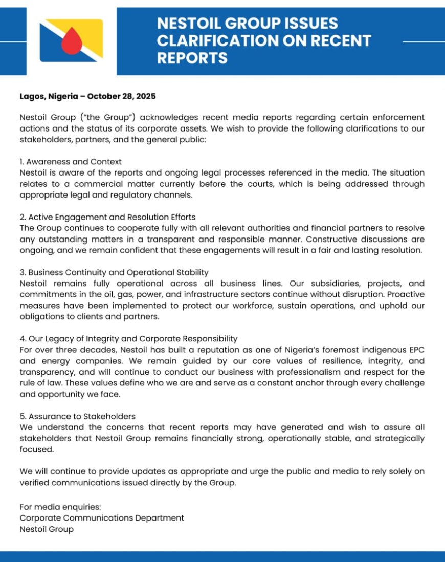 "Nestoil remains financially strong, operationally stable, and strategically focused," the statement added, reaffirming the company's three-decade legacy of integrity and professionalism.