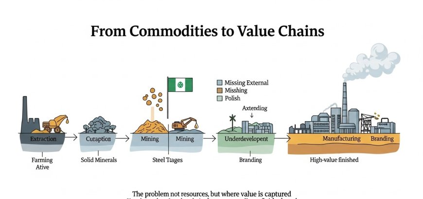 Nigeria remains trapped in a colonial economic pattern: exporting raw value and importing finished products. This structure hardwires dependency into the economy. Ha-Joon Chang, in *Kicking Away the Ladder*, shows how today’s rich countries protected and nurtured domestic industries before advocating for open markets. Nigeria, by contrast, liberalized early without first building globally competitive industrial capacity. Oil still dominates foreign exchange earnings, yet refined petroleum products are imported. Solid minerals leave the country with little or no processing. Agricultural products are exported raw and return as high-margin, branded imports. This is not a resource problem; it is a value chain problem.